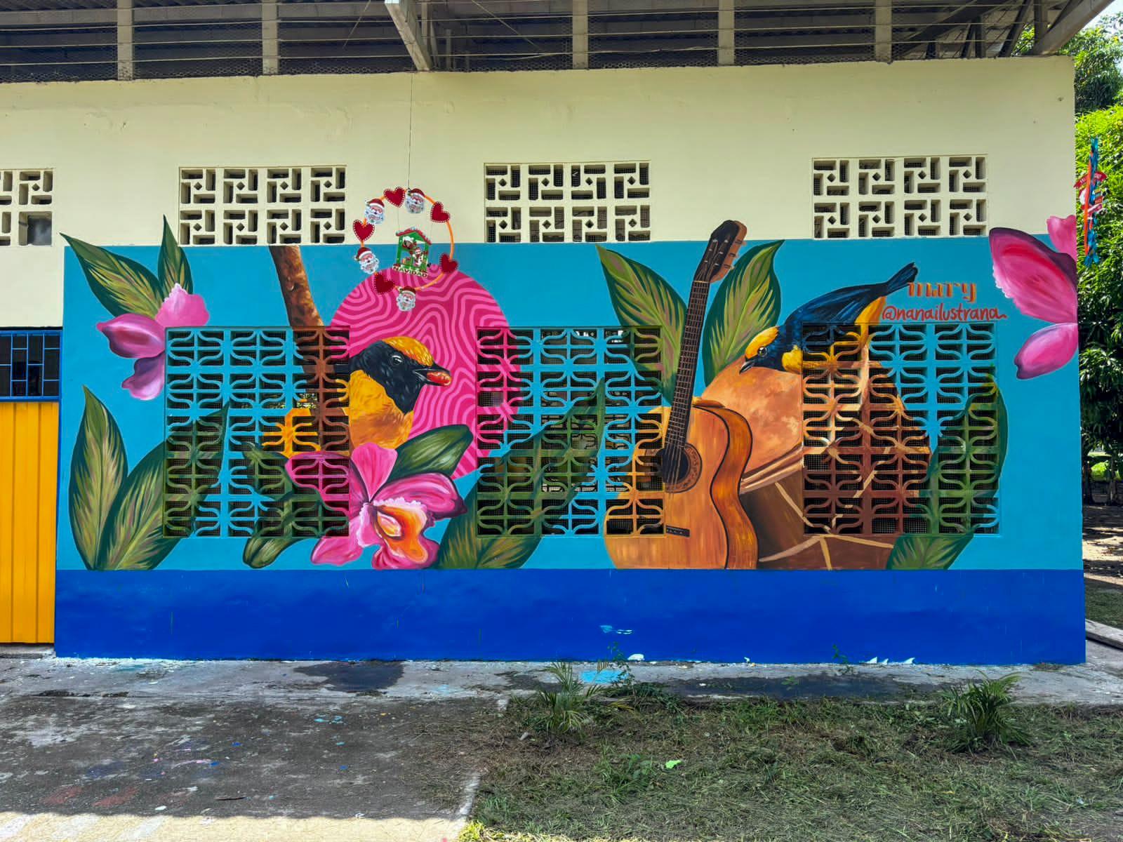 Las intervenciones incluyeron la restauración de fachadas con murales que reflejan la cultura y biodiversidad de la región, destacando elementos como el maíz, flora y fauna, símbolos del Tolima.